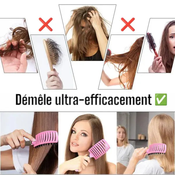 Marre des cheveux emmêlés et des séances de coiffage douloureuses ?  Découvrez la brosse qui révolutionne le démêlage ! Grâce à son design innovant, elle glisse à travers les nœuds sans tirer, pour une chevelure douce, fluide et éclatante en un seul geste.