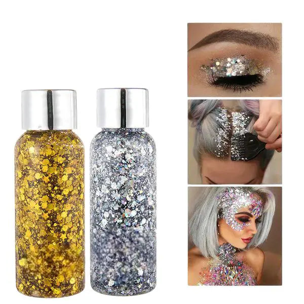 đïž Ajoutez une Ă©tincelle Ă votre routine beautĂ© dĂšs aujourdâhui avec notre gel paillettes visage et corps, un indispensable pour briller en toute occasion ! đ