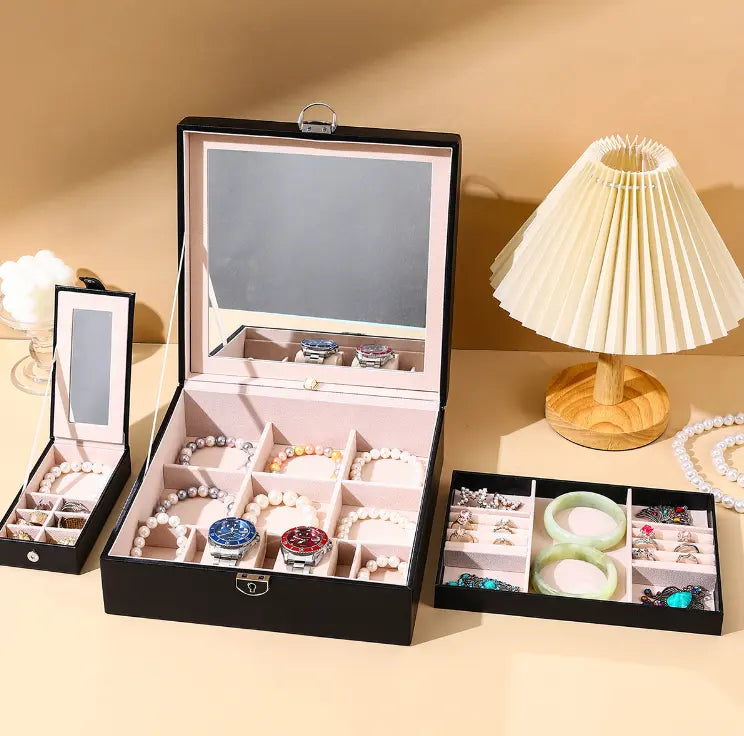 Offrez à vos précieux bijoux et accessoires de beauté un écrin digne de leur éclat avec notre boîte de rangement bijoux adaptable. Conçue en cuir de qualité supérieure, elle allie élégance et fonctionnalité pour vous permettre de ranger vos trésors en toute sécurité et style.